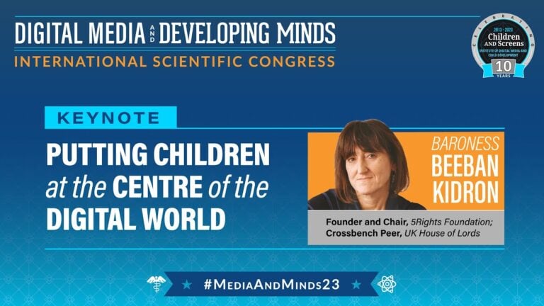 Baroness Kidron delivered the opening night keynote speech at the Digital Media and Developing Minds International Scientific Congress in Washington DC, arguing that children's safety requires thinking about children at all stages in the development of the digital world.
